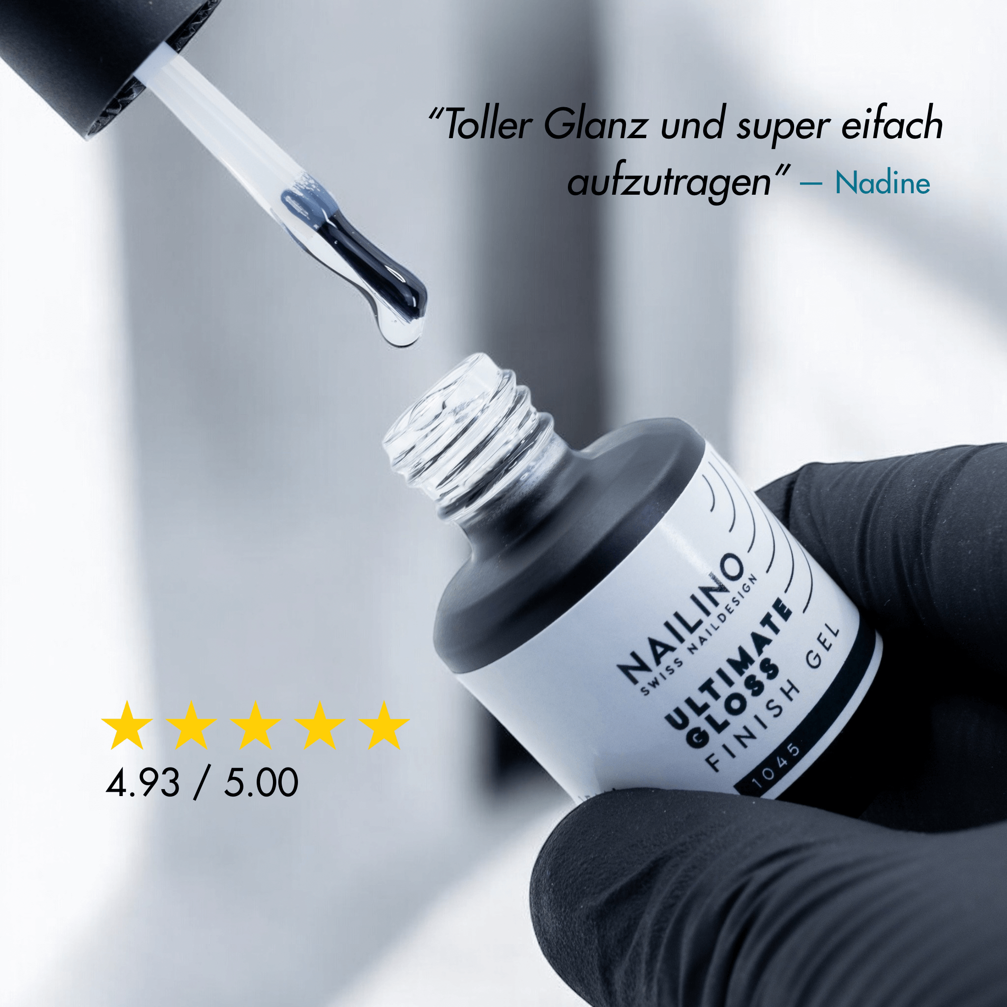 Versiegle dein Nagelkunstwerk mit unserem Finish Gel Bestseller - für spiegelglatte Nägel ganz ohne Schwitzschicht. Vegan, stark, einfach wow.