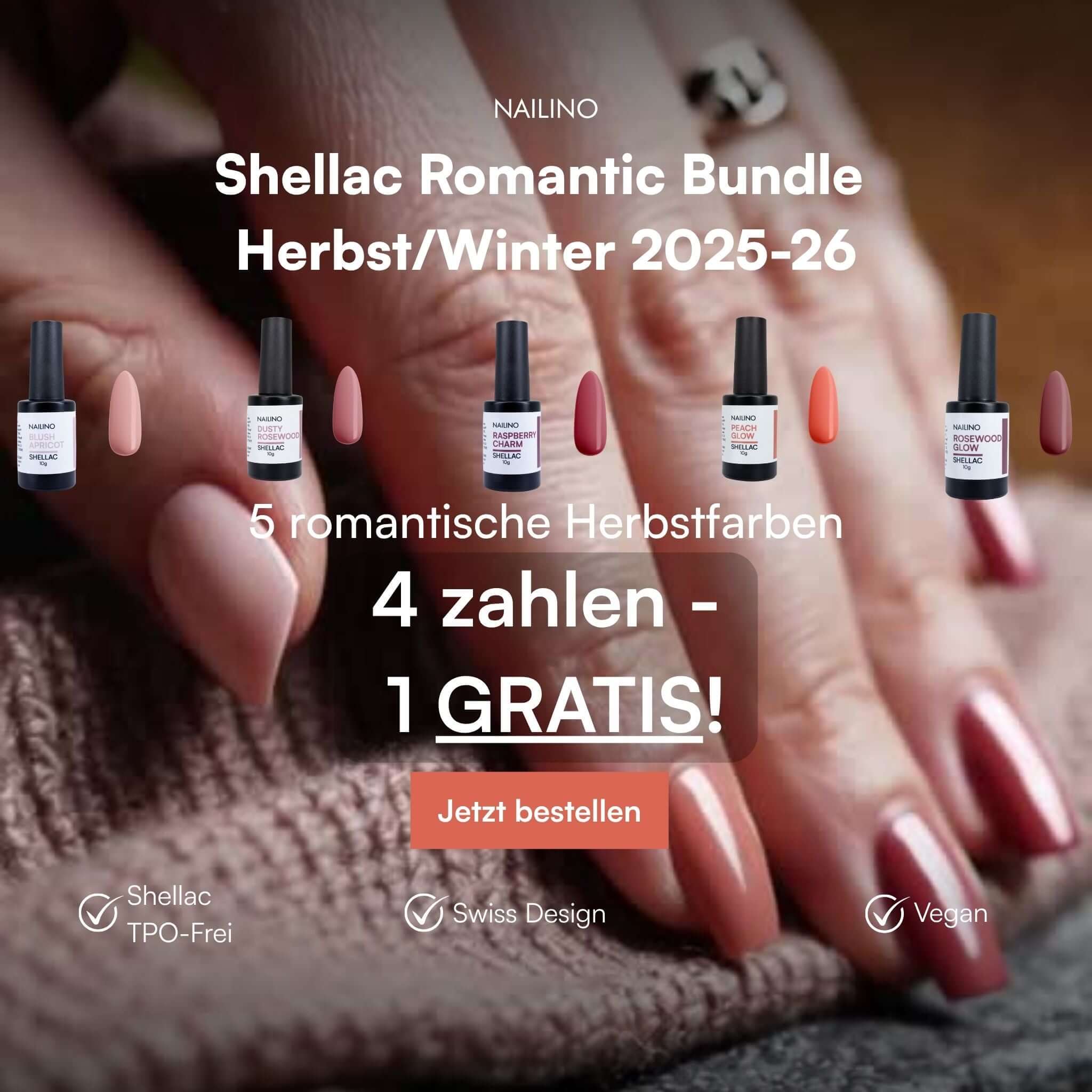 Das NAILINO Romantic Bundle vereint fünf perfekt aufeinander abgestimmte Farben für feminine, elegante und zeitlose Looks. Ob sanftes Apricot, zartes Rosé oder tiefes Rosenholz – dieses Set bringt pure Romantik auf deine Nägel. Ideal für besondere Anlässe, Dinner-Dates oder einfach, um den Alltag mit stilvollen Akzenten zu verschönern.