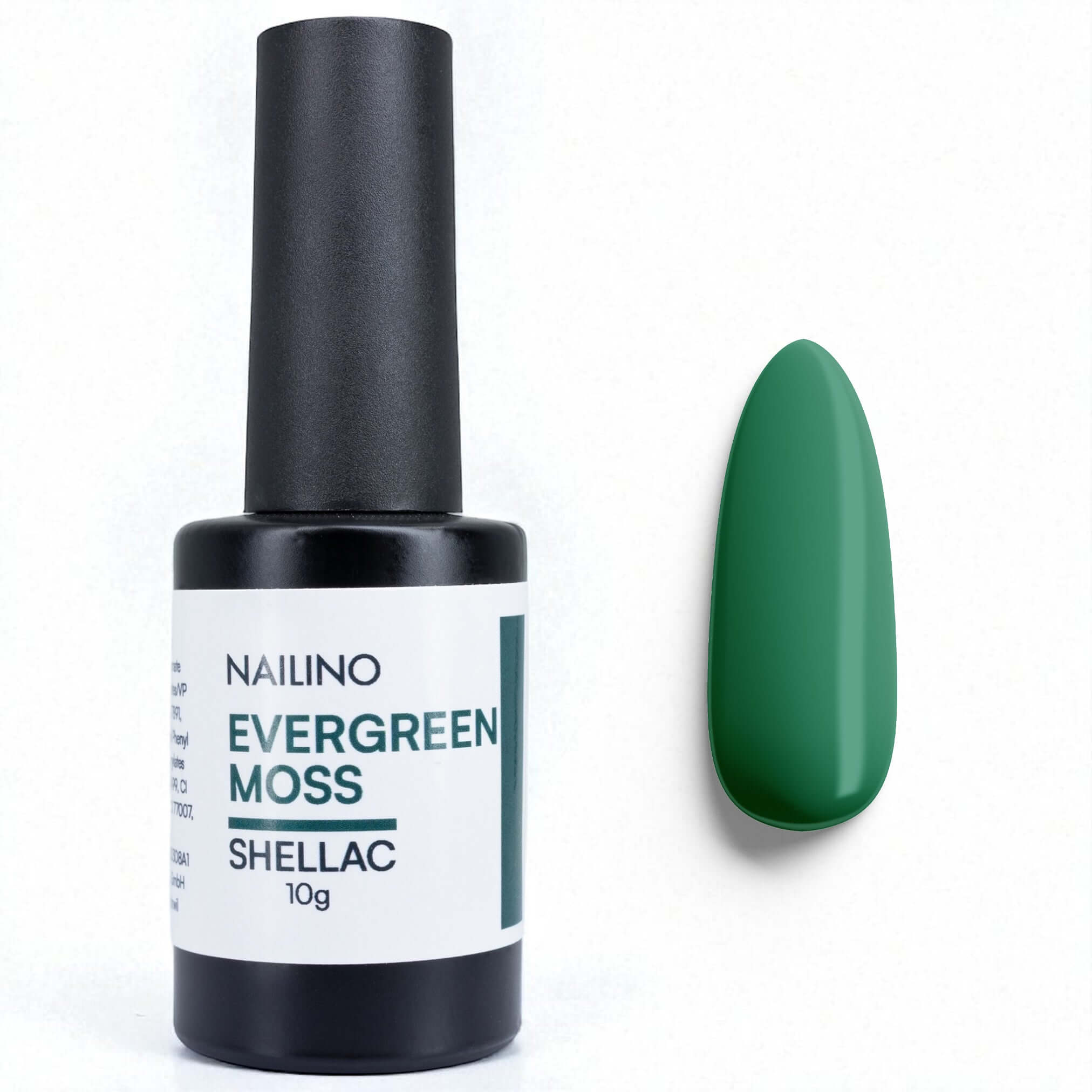 NAILINO Evergreen Moss Shellac ist ein sattes Waldgrün mit klassischer Eleganz. Inspiriert von tiefen Tannenwäldern – ideal für moderne Styles und aussergewöhnliche Looks.