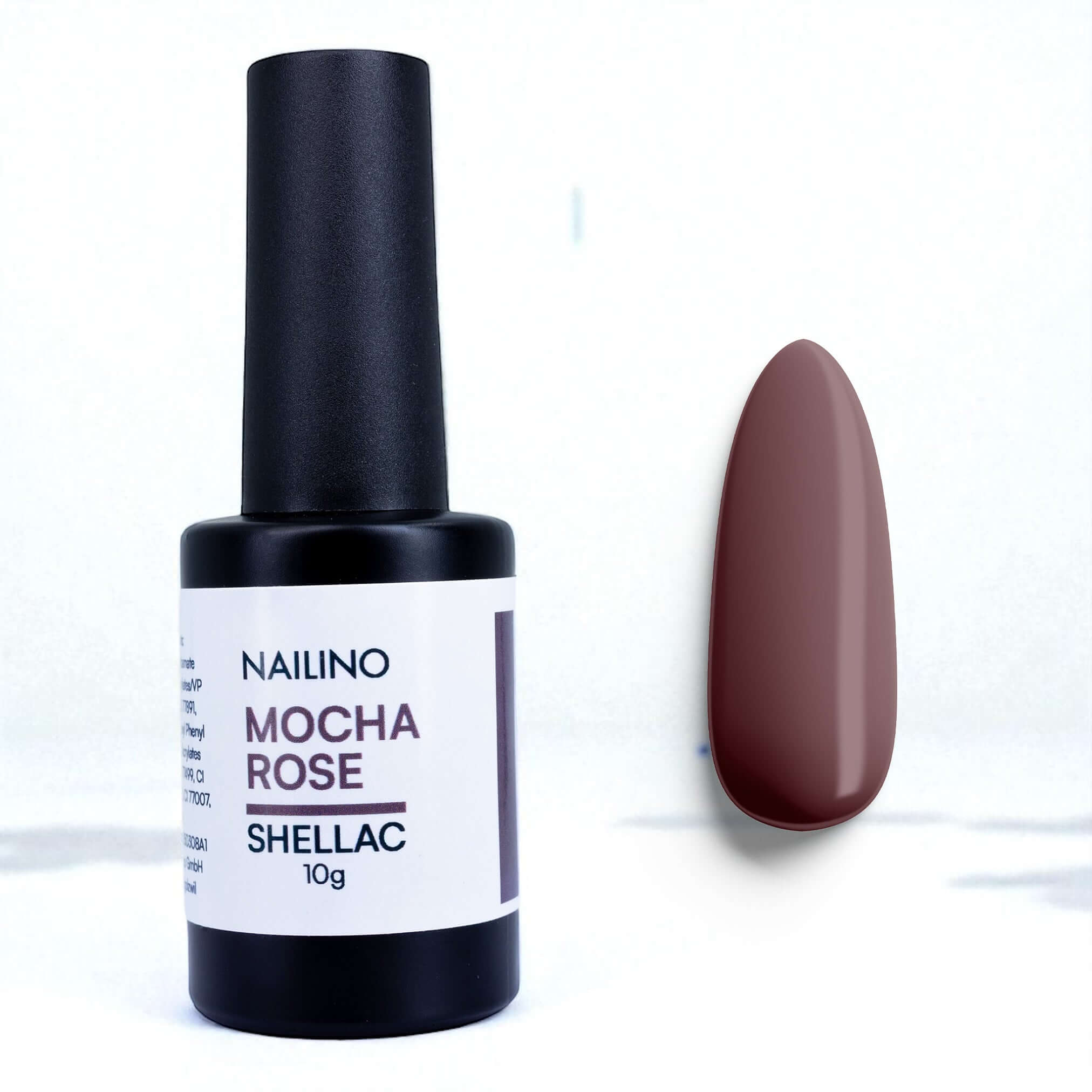 NAILINO Mocha Rose Shellac vereint die Wärme von Braun mit einem Hauch Rosé. Der Ton wirkt edel, modern und tragbar – perfekt für elegante Alltags- und Abendlooks.