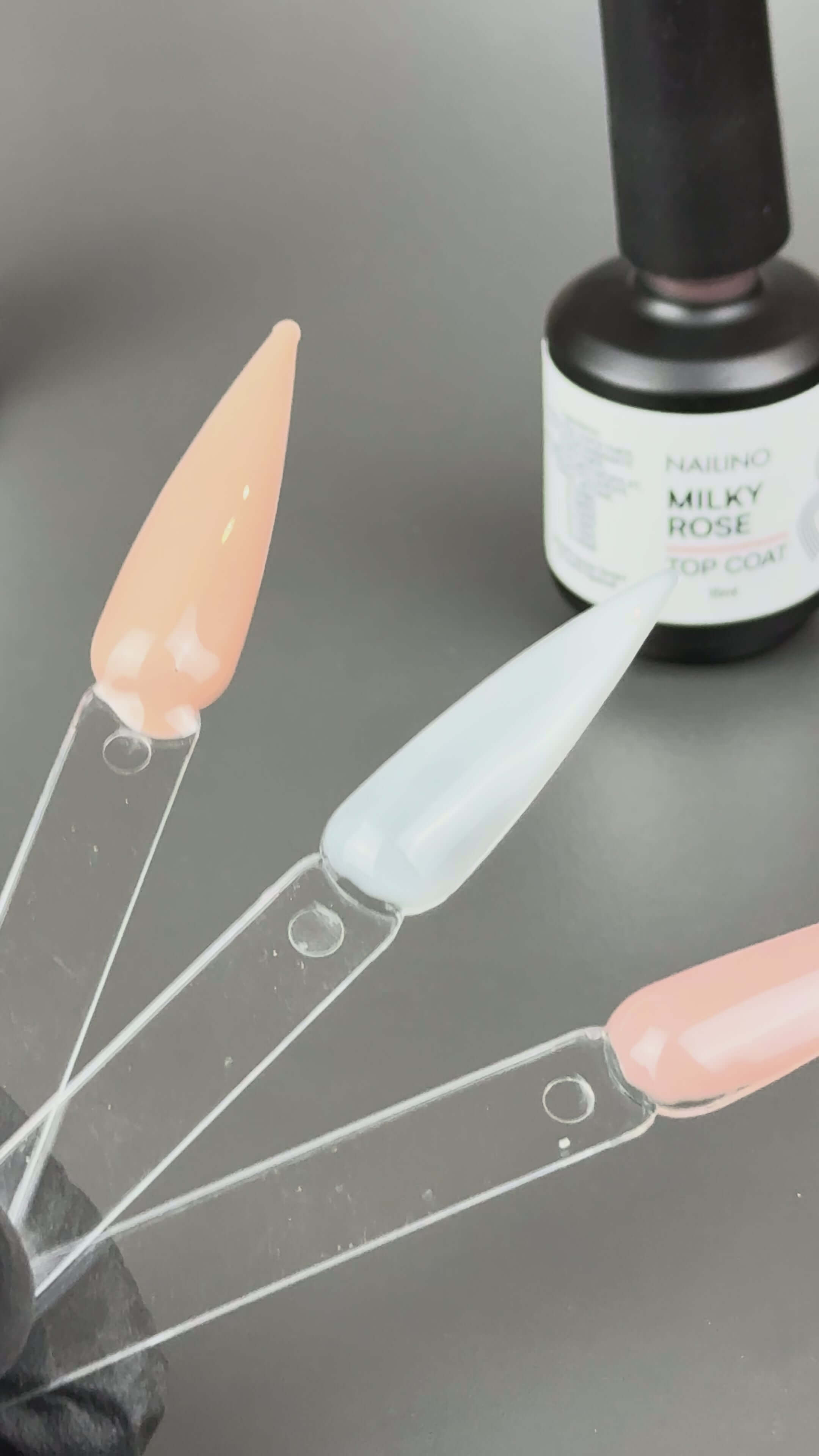 Der Milky Top Coat enthält einen leichten Milchschimmer, der Farben weicher wirken lässt – ideal für natürliche Looks oder Babyboomer-Designs.