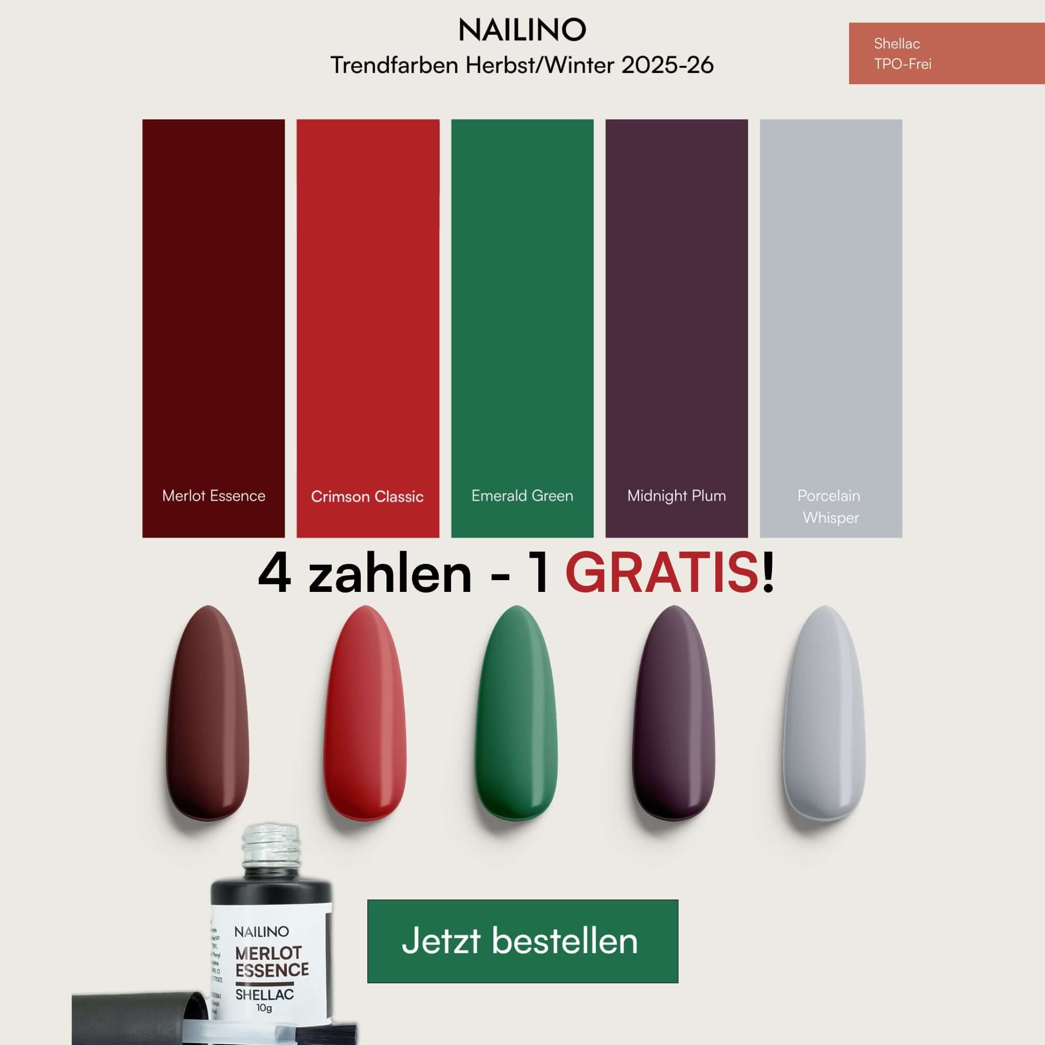 NAILINO Shellac Farben – Herbst/Winter 2025-26 (5 Farben – 1 gratis)